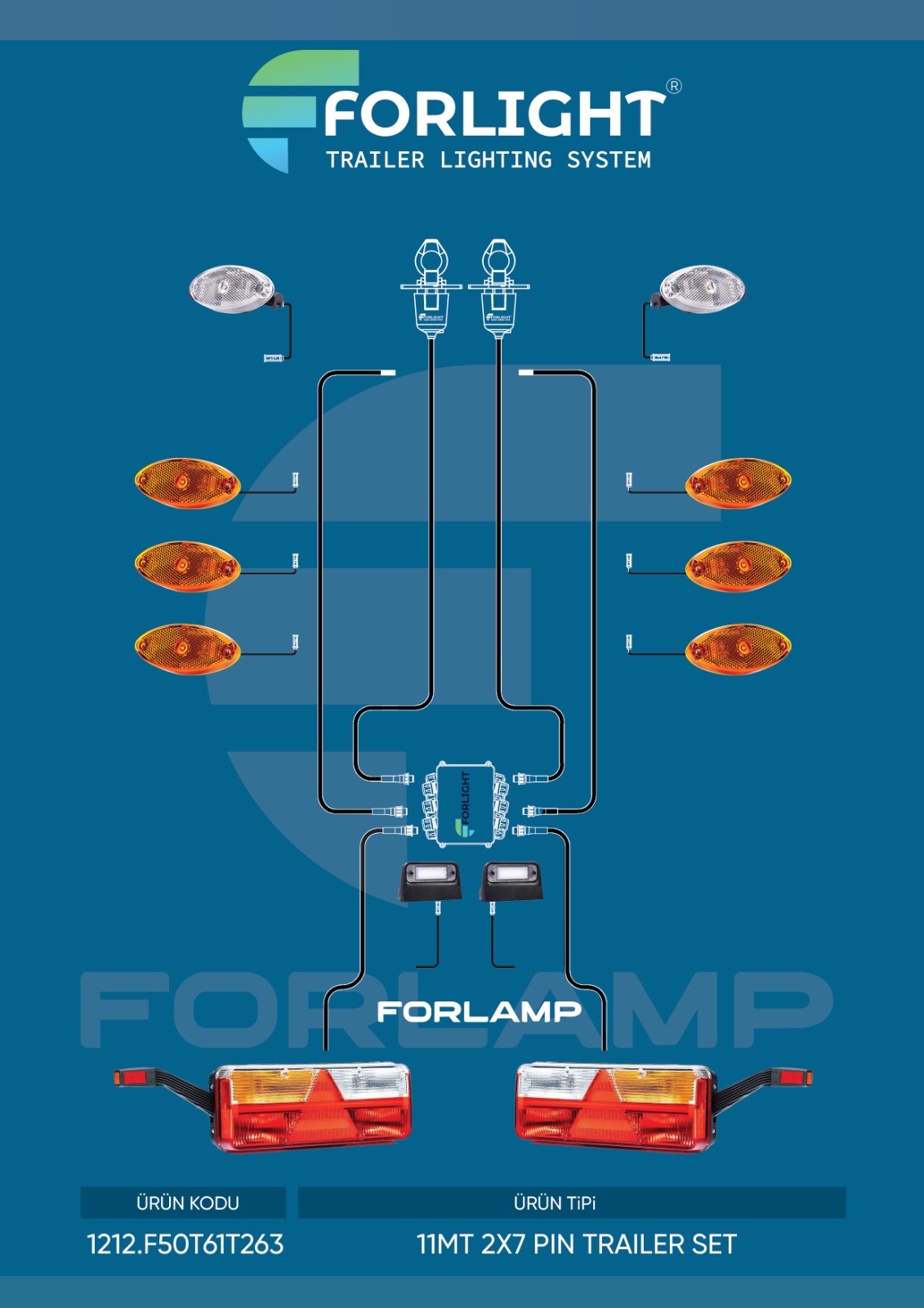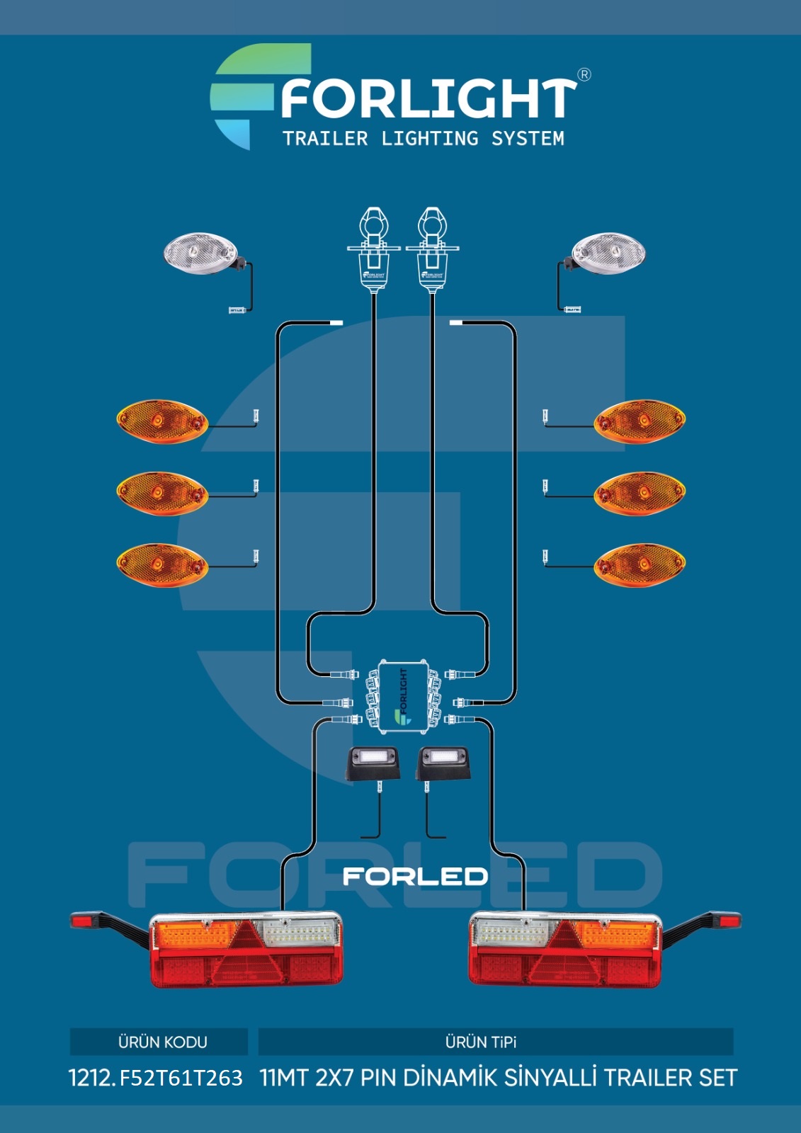 TRAİLER SET 11M 2X7 PİN FORLED 1 BOYNUZLU DİNAMİK SİNYAL