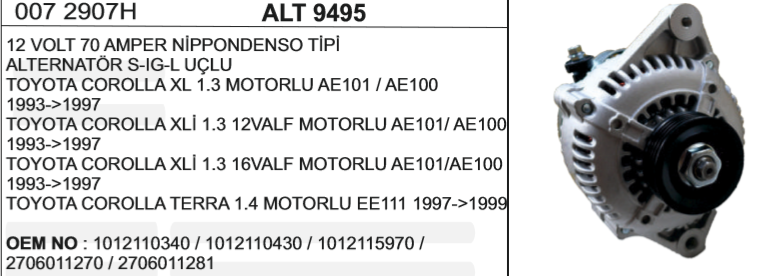Categories / ŞARJ GRUBU (ALTERNATÖRLER) / ALTERNATÖR DİNAMOLARI KOMPLE
