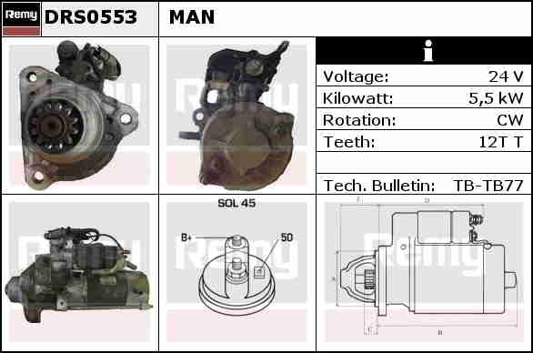 STARTER 24V 12T 5,5KW MAN TGA TGS TGX